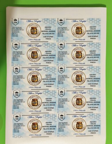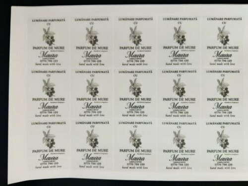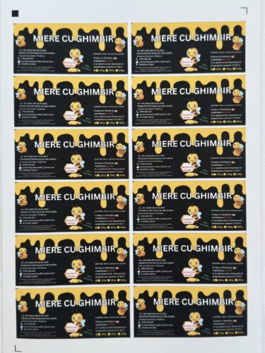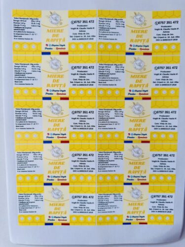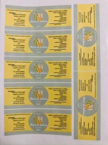 Aici vei găsi exemple de etichete autoadezive realizate pentru diverse produse și dimensiuni.