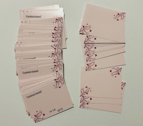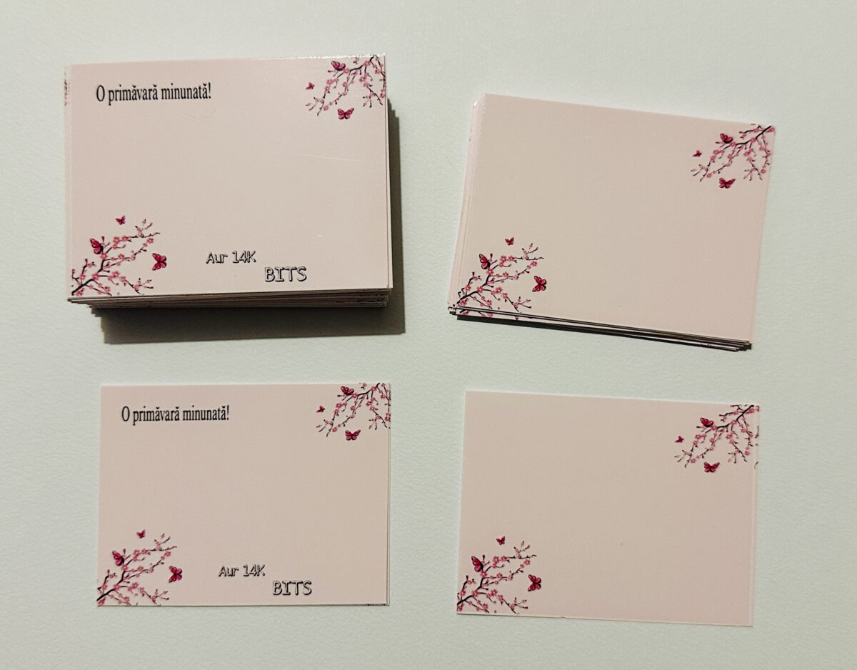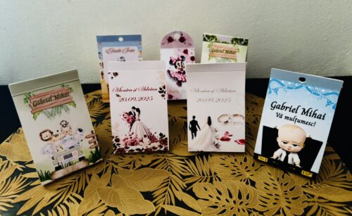 Aici vei găsi exemple de cartonașe realizate pentru diverse dimensiuni și design-uri personalizate. Realizăm cartonașe pentru toate formele și mărimile dorite.