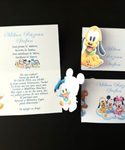 Invitația Disney pentru botez în plic C6 este alegerea perfectă pentru un eveniment plin de culoare, bucurie și emoție. Designul vesel, inspirat din universul Disney, aduce un plus de farmec și creează o primă impresie plăcută pentru invitații tăi.