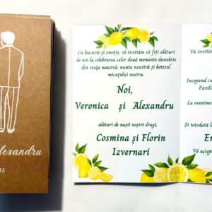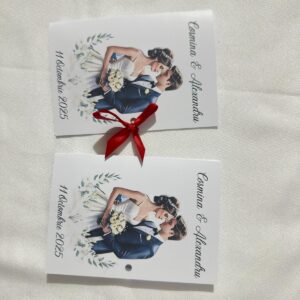 Invitație stil cărticică 10×15 cm cu fundă elegantă