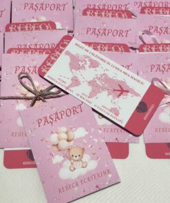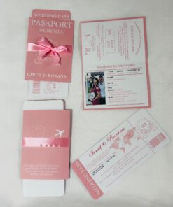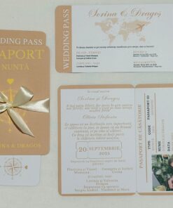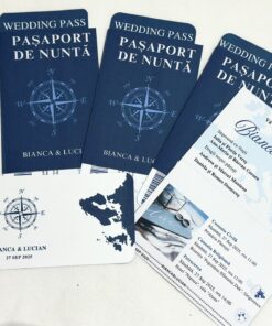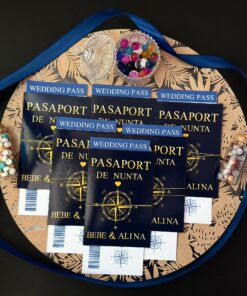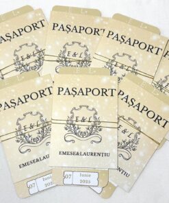 Invitația tip pașaport este o alegere originală și modernă pentru evenimentele care merită să fie anunțate într-un mod diferit. Formatul compact, inspirat de designul unui pașaport, oferă invitației un aspect inedit și atrage imediat atenția invitaților.