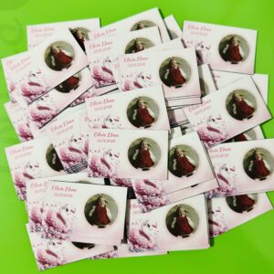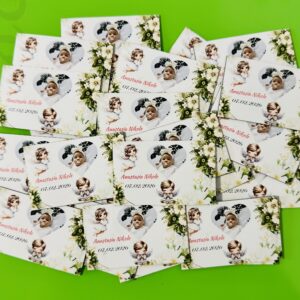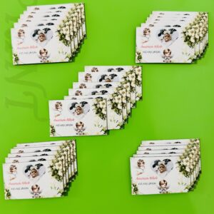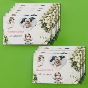 Fiecare magnet este tipărit la calitate ridicată, cu culori clare și rezistente, și poate fi livrat individual ambalat, gata de oferit invitaților. Designul este adaptat tematicii evenimentului, fie că este vorba de botez sau nuntă.
