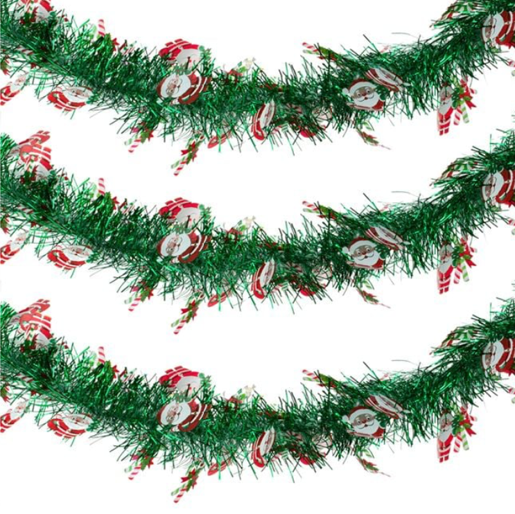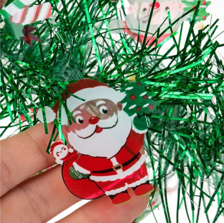 Beteala decorativă de Crăciun cu tinsel transparent, bastonașe și figurine Moș Crăciun aduce un plus de veselie și strălucire bradului tău. Realizată din plastic rezistent, are lungimea de 3 metri și lățimea de 10 cm, fiind perfectă pentru împodobirea bradului de Crăciun, decorarea ferestrelor sau a camerei. Efectul transparent cu accente colorate oferă o atmosferă festivă și magică, specifică sărbătorilor de iarnă.