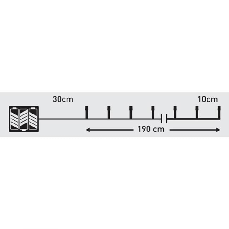 Lungimea cablului este de 2.2m, iar distanta dintre becuri este de 30cm, fiind ideală pentru brăduțul de Crăciun sau pentru a adăuga un strop de lumină decorativă în orice colț al casei.