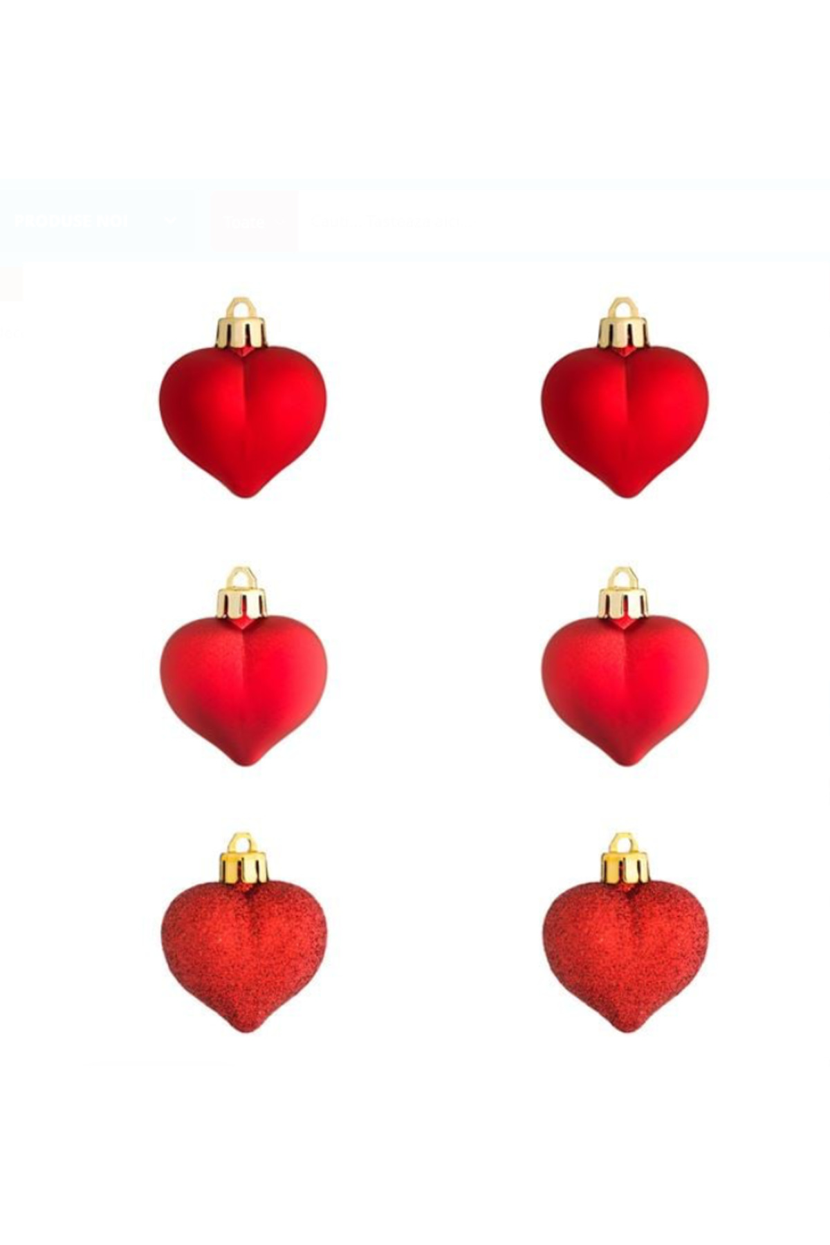 Adăugați un strop de magie bradului dumneavoastră cu aceste ornamente în formă de inimă, de culoare roșie mată, decorate cu glitter strălucitor.