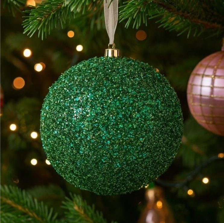 Adaugă un strop de eleganță bradului tău cu acest glob de Crăciun verde cu tinsel, perfect pentru a completa orice decor festiv. Cu un diametru de 12 cm, globul strălucește subtil datorită tinsel-ului integrat, oferind o atmosferă magică și veselă în casa ta în perioada sărbătorilor. Ideal pentru împodobirea bradului sau realizarea unor aranjamente decorative elegante.